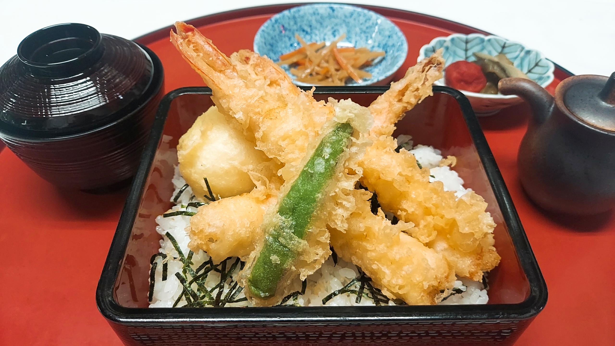 海老と半熟玉子の天重